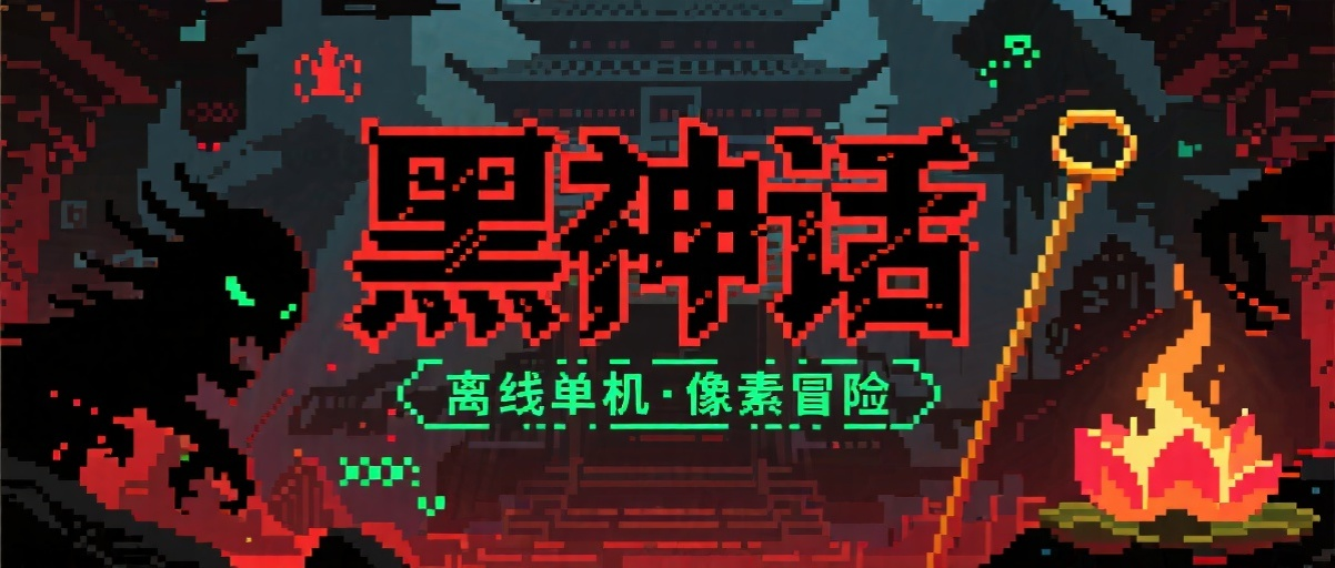 B站UP主开发的《黑神话:悟空》像素风格离线单机游戏,包含10个场景和多种动作